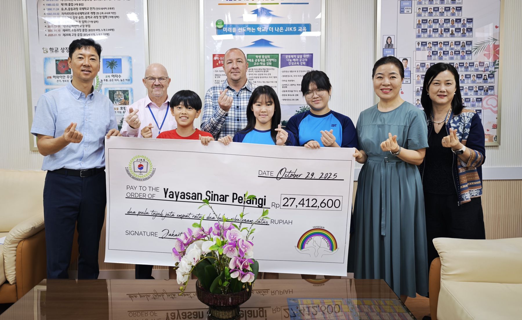 . fun and meaningful activities at school. Through their hard work and enthusiasm, the students managed to raise an impressive total of over 27 million rupiah for the Sinar Pelangi Charity in Bekasi. The funds will be used to support medical operations for poor families who cannot afford treatment. Last week, the Primary student leaders, along with their teachers, visited the Sinar Pelangi Charity to personally present the donation to Sister Atanasia, who is in charge of the organization. It was a heartwarming moment that showed the power of compassion and teamwork within the JIKS community.