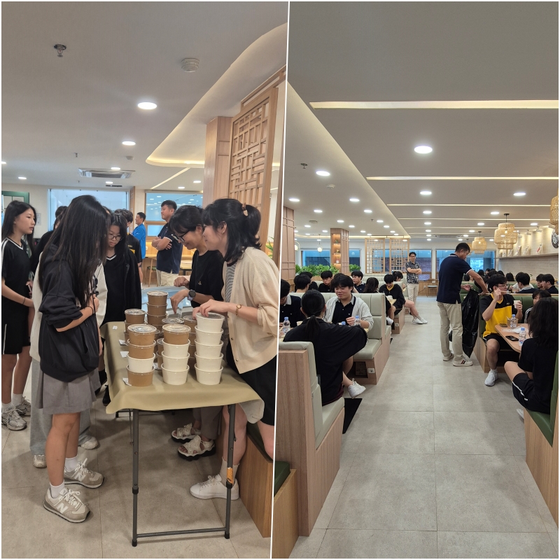 1부와 2부 사이에는 직스 학생들의 다양한 의견과 학생 TF팀의 적극적인 참여로 학교와 함께 디자인하고 리모델링 된 어울관 식당에서, 학생부 선생님들께서 직접 준비해주신 학교 식사와 간식을 먹으며 함께 어울리는 교류의 시간을 가졌습니다.