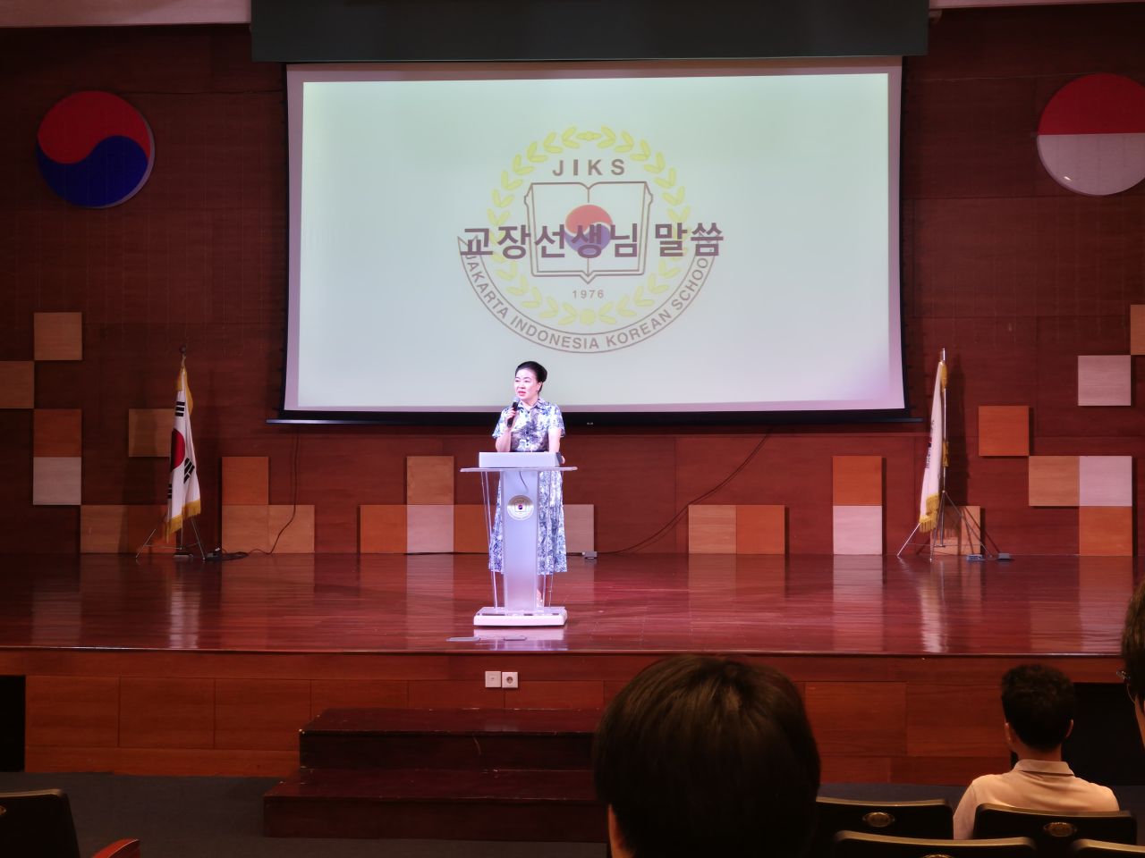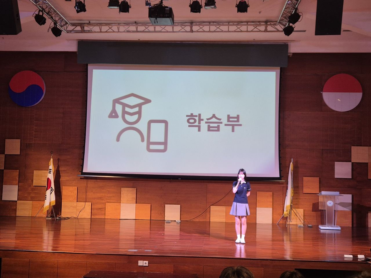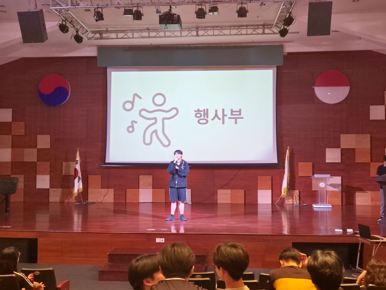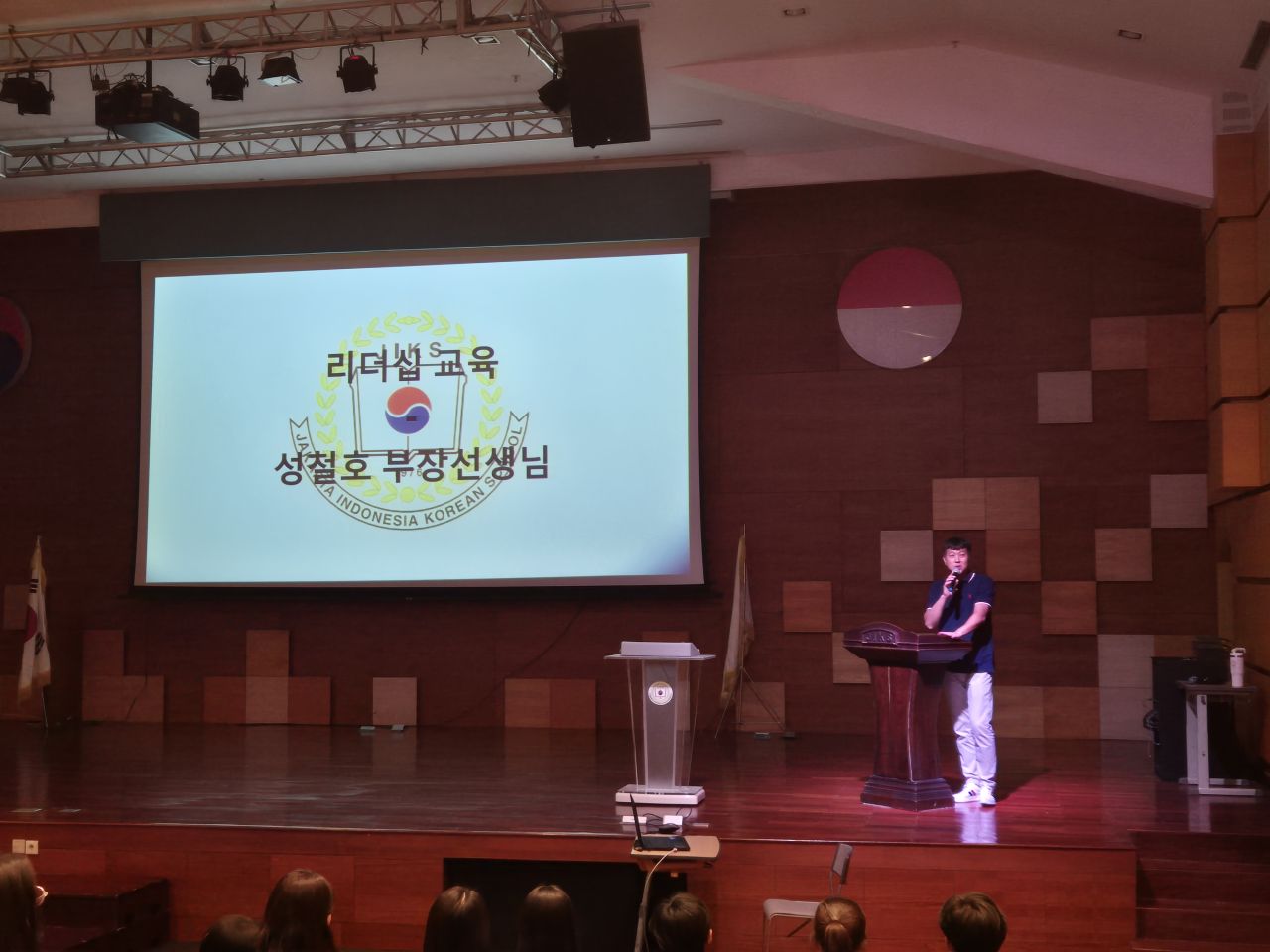 임원수련회 1부에서는 이선아 교장선생님께서 최근 학교에서 다녀온 인도네시아 찌까랑 지역 쓰레기 마을 봉사활동 사례를 바탕으로, 세계시민적 리더십과 인도적인 글로벌 리더십의 중요성을 강조하시며, 어려운 이웃을 살필줄 아는 넓은 시야를 지닌 리더로 성장하길 당부하셨습니다. 이어 성철호 학생복지부 부장선생님께서 누구든지 언젠가는 리더가 될 수 있으며 리더의 인성을 함양하기 위해 개인이 노력해야 하는 부분에 대해 강의해 주셨습니다. 또한 고등학교 총학생회장(여찬은(11))과 부회장(이래경(11)) 학생의 사회로 총학생회와 각 부서별 소개가 진행되었으며, 대의원회 학생들이 부서를 선택하고 조직하는 시간을 가졌습니다.