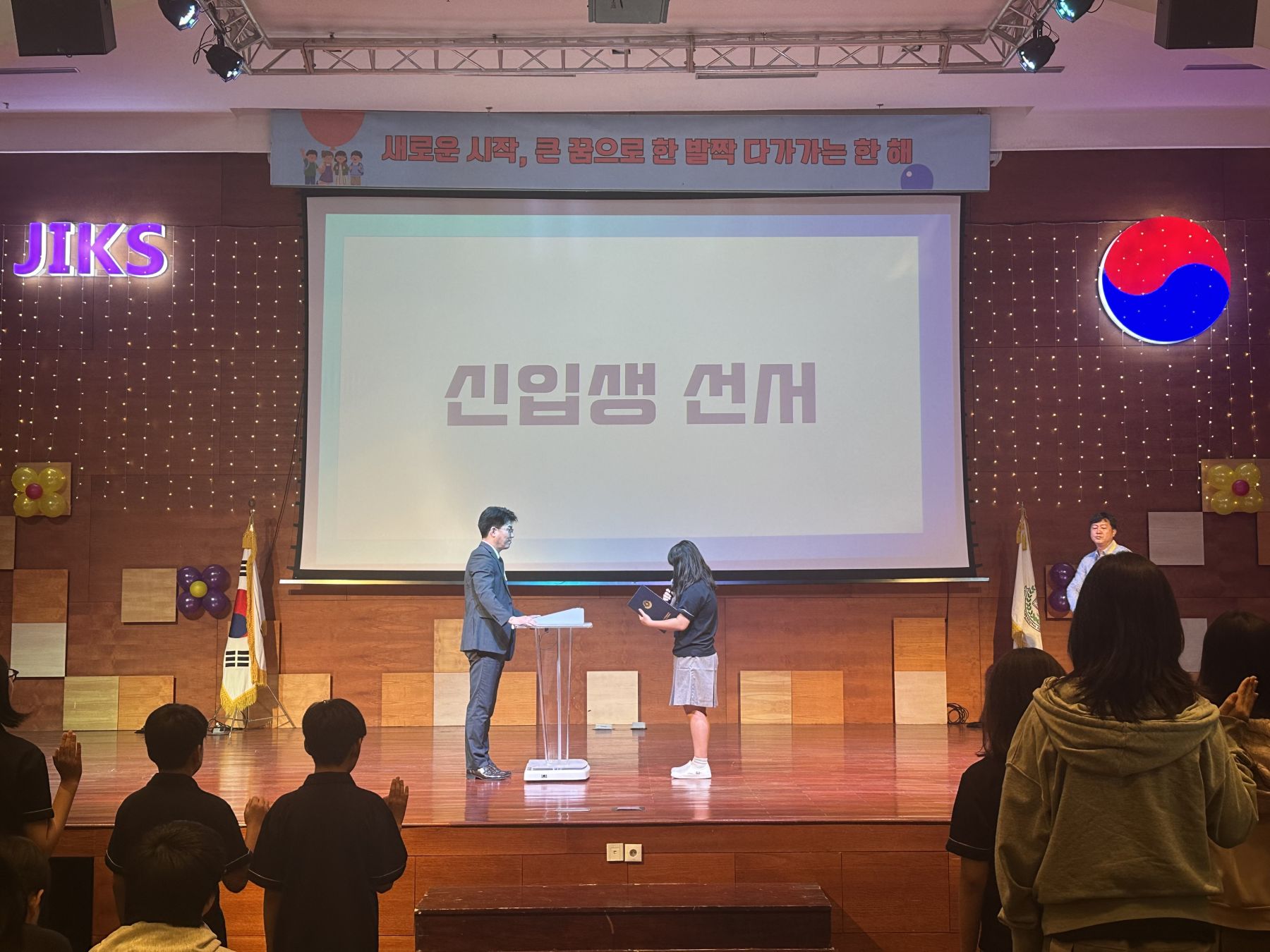 신입생 대표 학생의 선서와 교장선생님의 입학 허가를 통해 JIKS 생활을 시작하게 되었습니다.