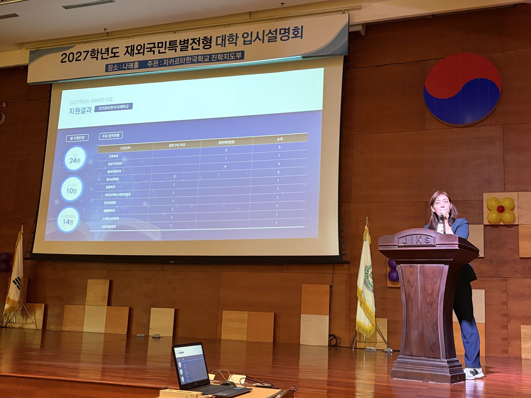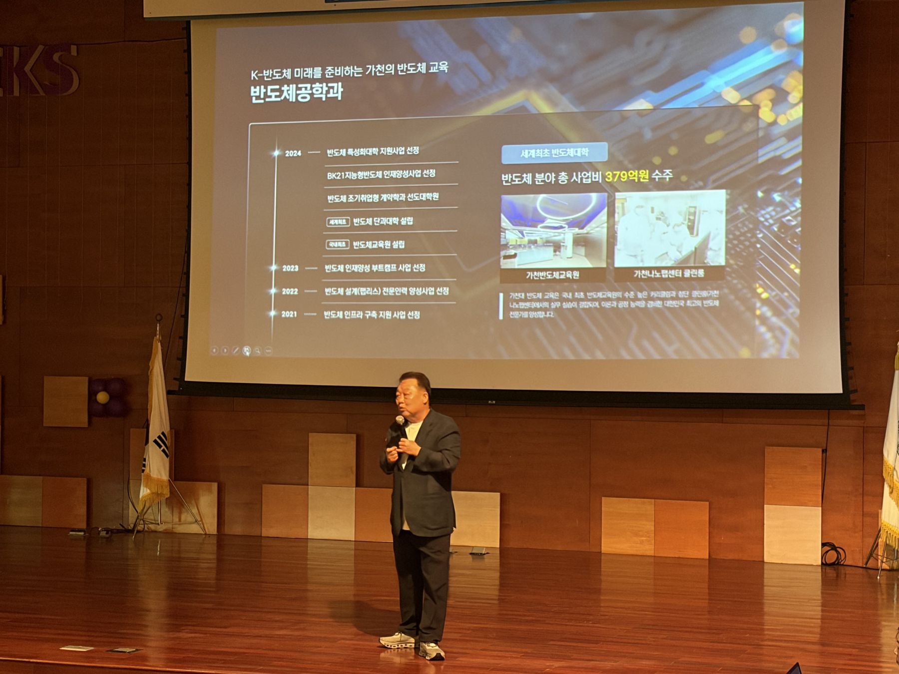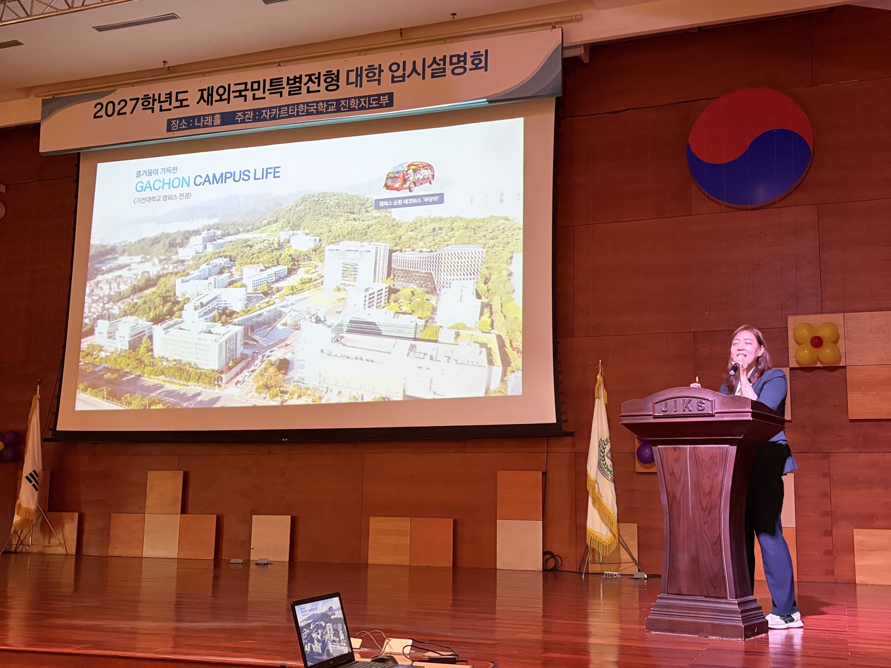 가천대학교 입시설명회 현장입니다. 채은희 선임사정관님과 김일태 입학부처장님의 시원시원한 설명에 그 어느 때보다 청중의 호응이 높은 설명회 시간이었습니다. 입학전형에 대한 설명회였지만, 진로캠프라고 해도 손색이 없을 만큼 학생들이 본인의 진로를 정하기 위해 어떤 고민과 준비를 해야 하는지 숙고할 수 있는 좋은 기회이기도 했습니다.
