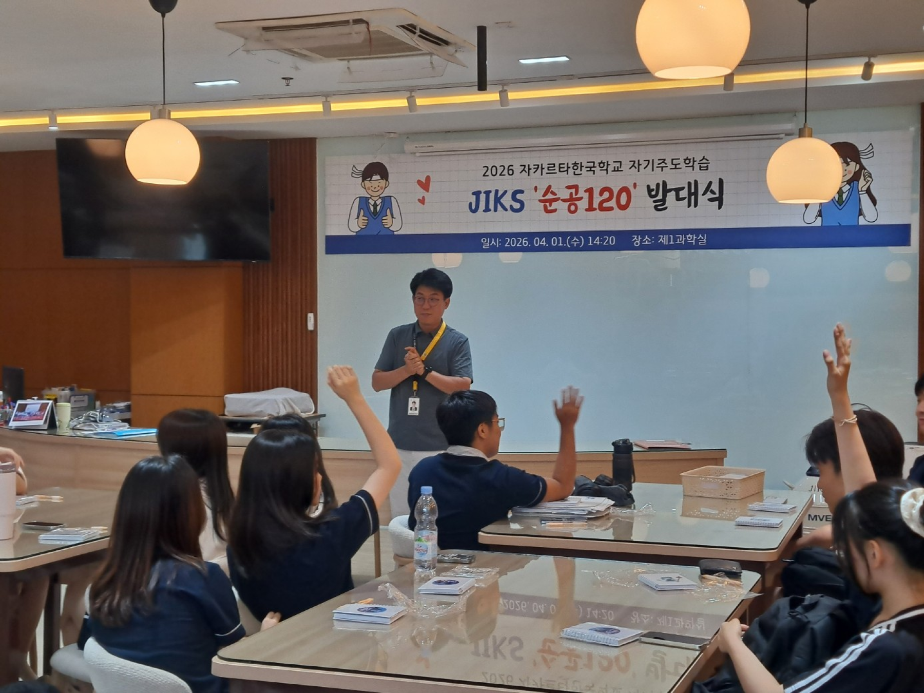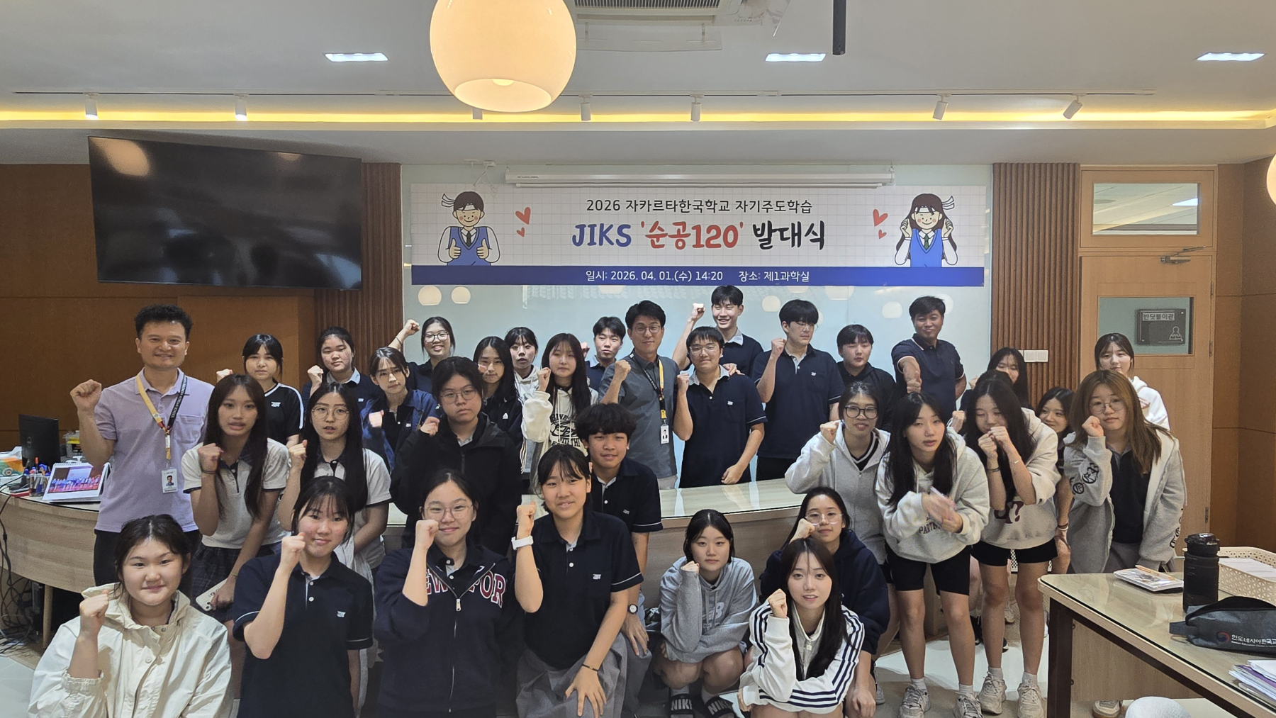자카르타한국학교(JIKS, 교장 이문성)는 4월 1일(수), 본교 제1과학실에서 7~12학년 재학생들을 대상으로 하는 자기주도학습 프로그램인 '순공120' 프로젝트의 공식 발대식을 개최하였다.
