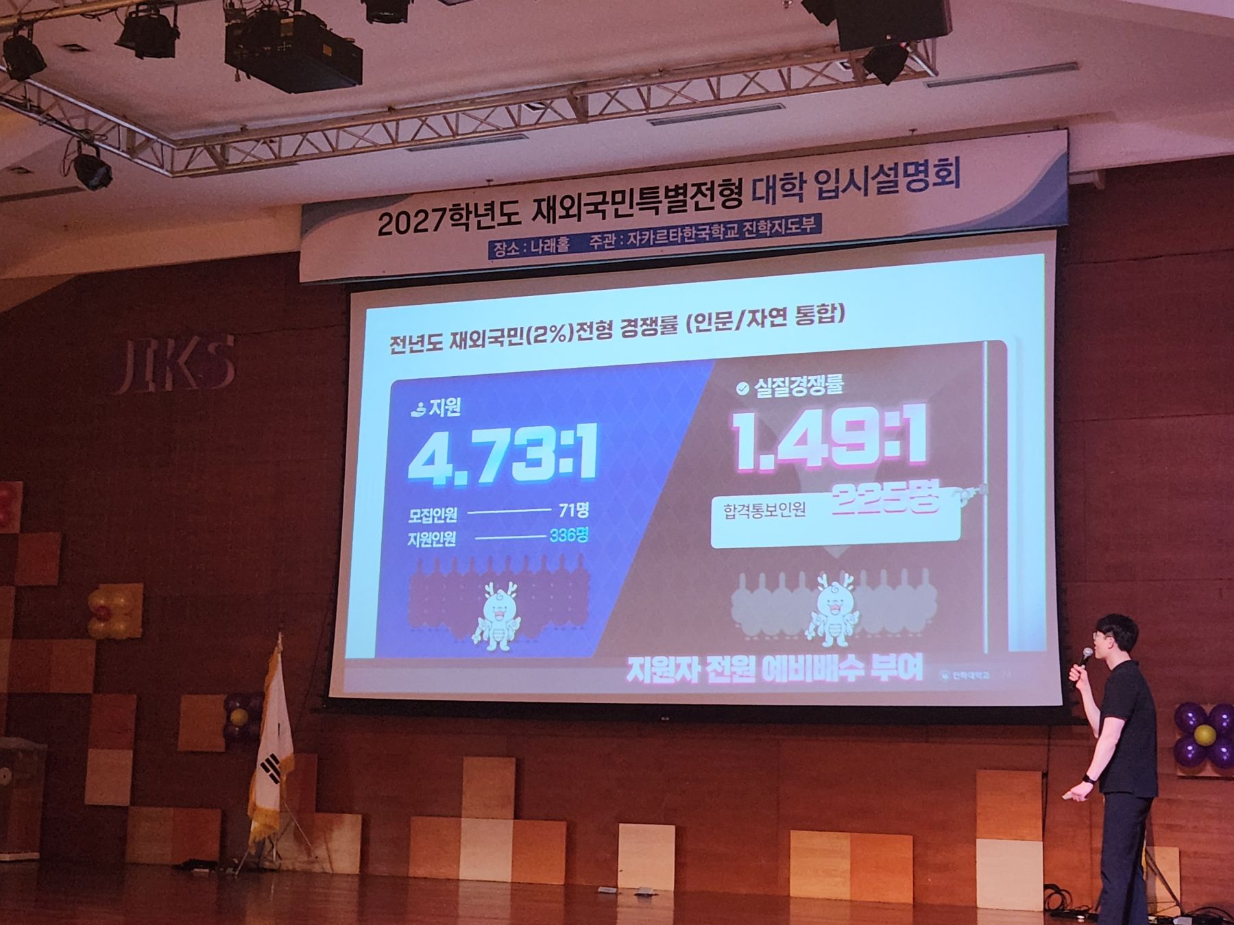 2027학년도 재외국민특별전형 대비 대학별 입학설명회의 첫 테이프를 인하대학교가 끊었습니다. 12학년 학생들과 학부모님들의 뜨거운 호응으로 설명회가 성황리에 치러졌고, 입시에 대한 유용한 정보를 얻고 궁금증을 해소하며 진학에 한걸음 더 다가가는 시간이었습니다. 앞으로 준비된 입시설명회에도 많은 관심 바랍니다.