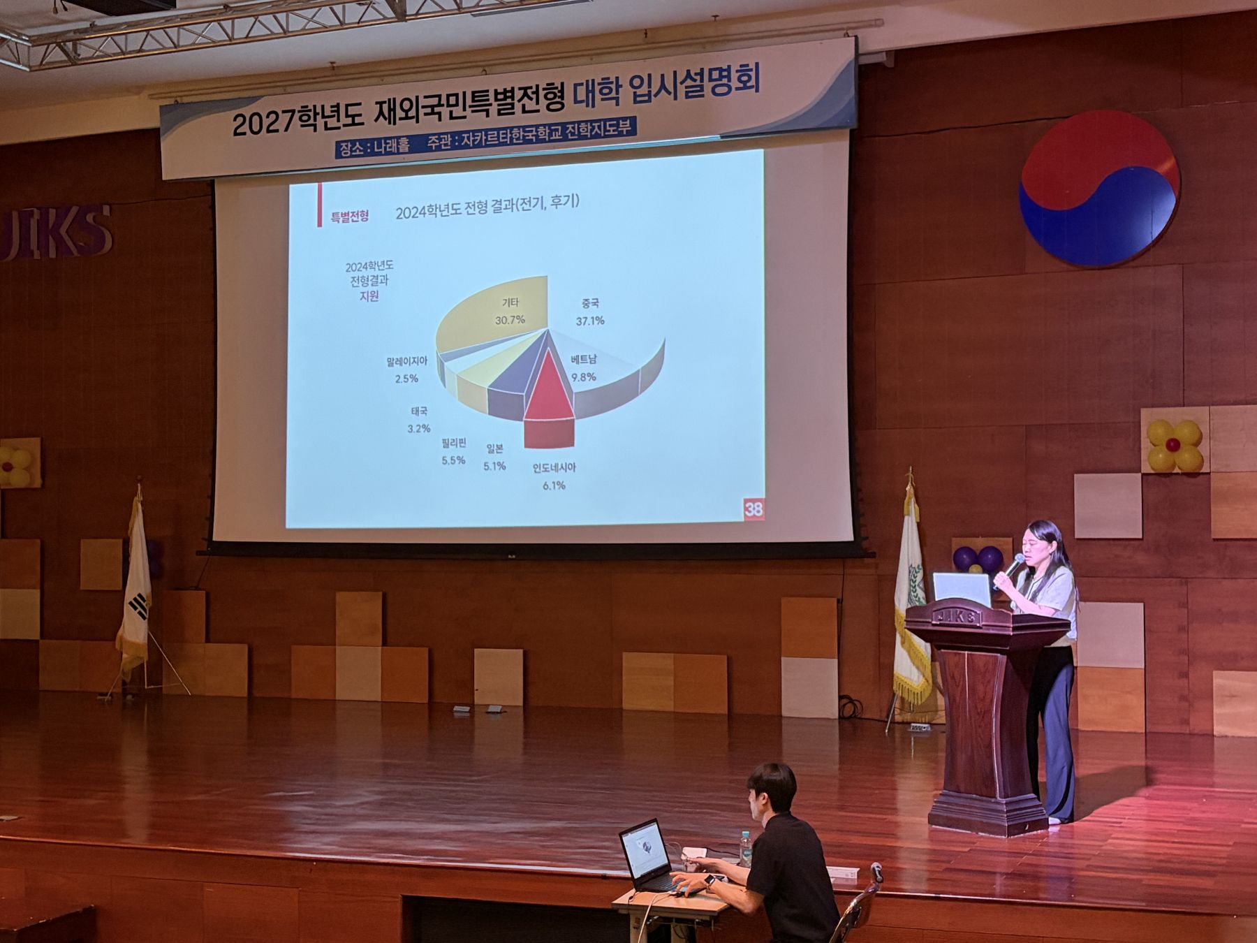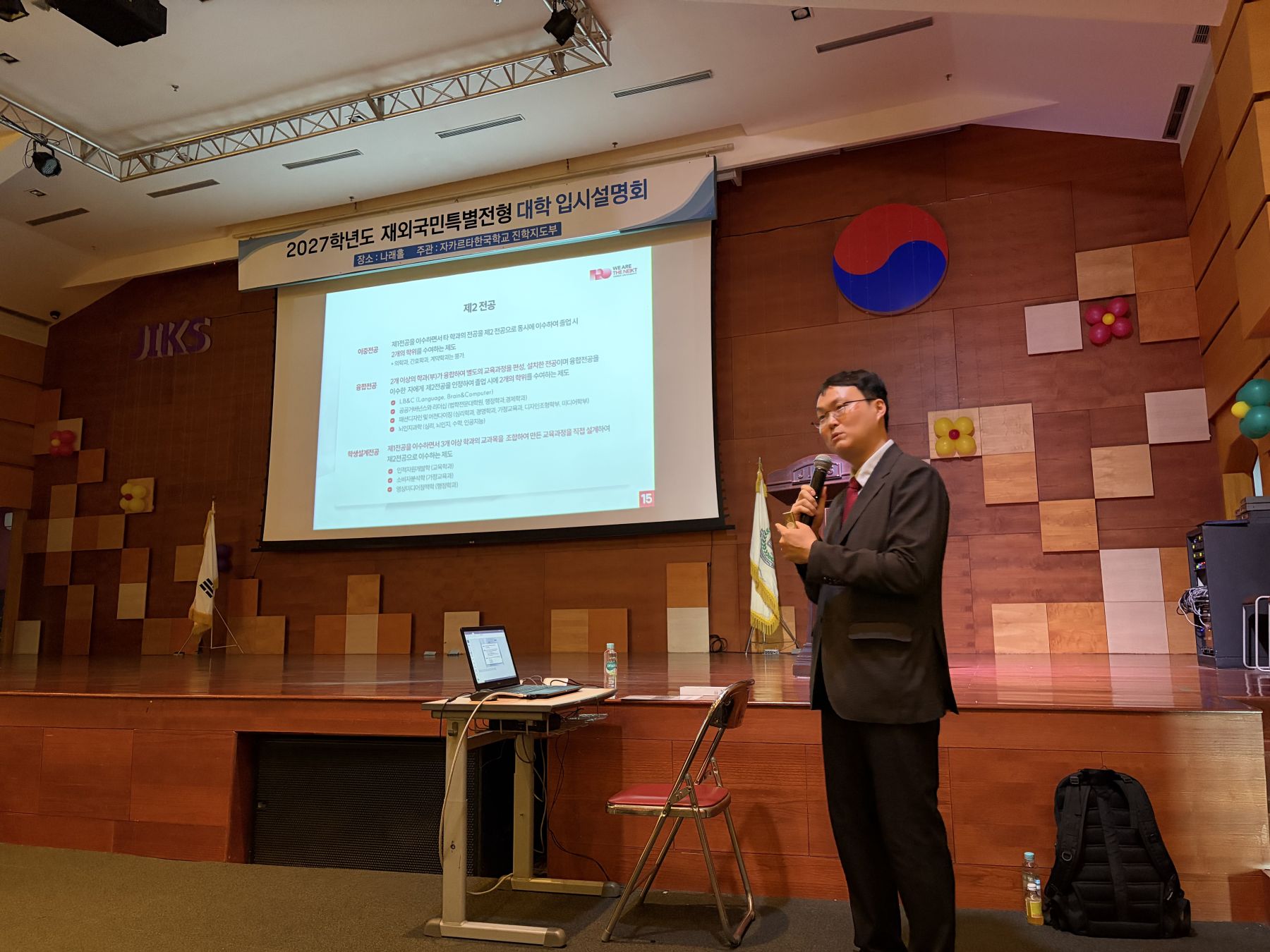고려대학교 입시설명회 현장입니다. 2년 만에 다시 오신 설명회인데다가 10학년부터 12학년까지 모두 참여해서 설명회 열기가 더욱 뜨거웠습니다. 김인기 입학팀장님의 고연전 소개로 시작한 고려대 설명회. 다음에 연세대 설명회는 연고전으로 소개를 시작하실지 궁금해집니다. 우리 학생들의 꿈이 이루어지길 바라며 오늘의 설명회도 잘 마무리하였습니다.