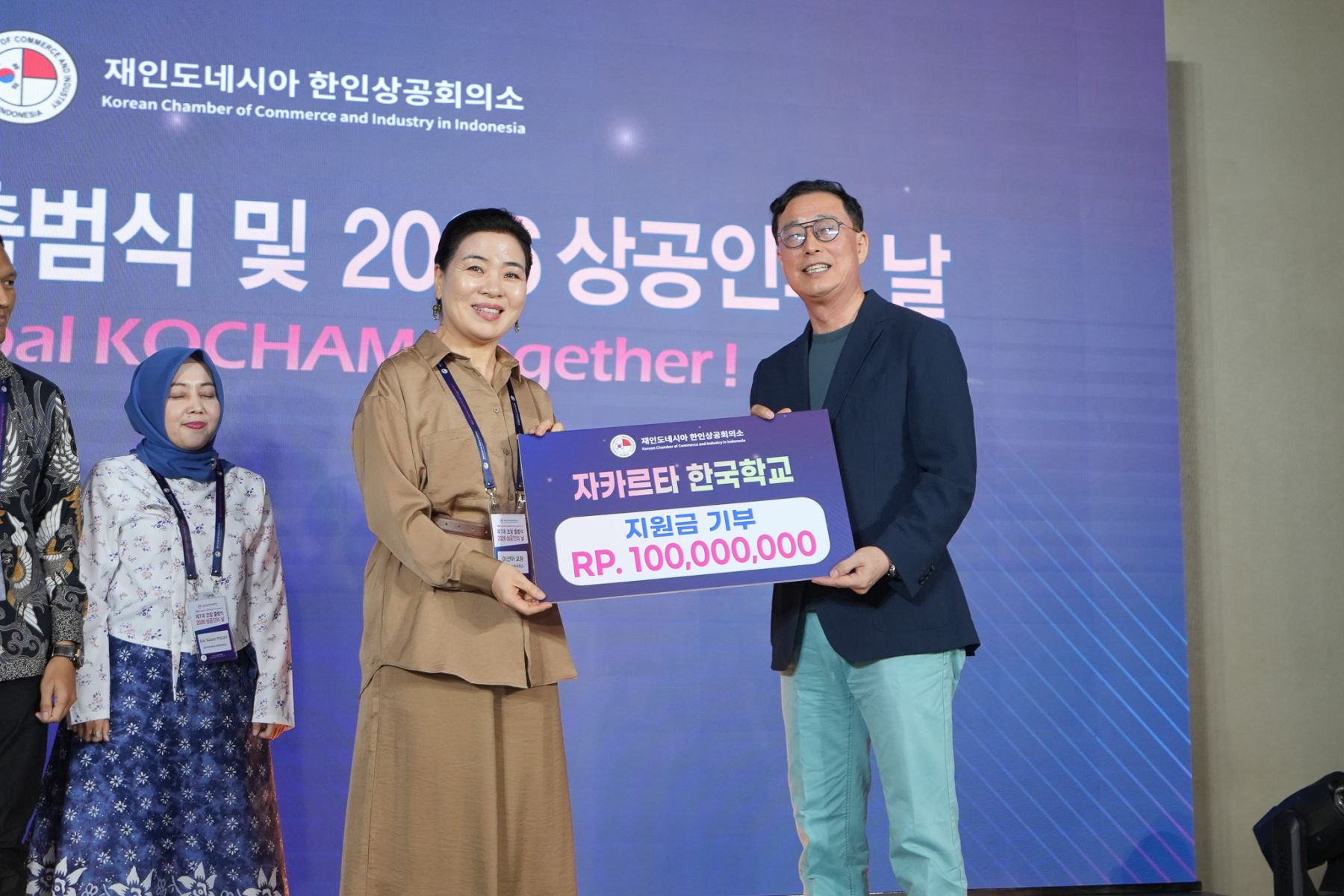 자카르타한국학교(JIKS)는 지난 1월 21일, 재인도네시아 한인상공회의소(이하 코참)의 '제7대 출범식 및 2026 상공인의 날' 행사에서 학교 발전을 위한 기부금을 전달받았습니다.
