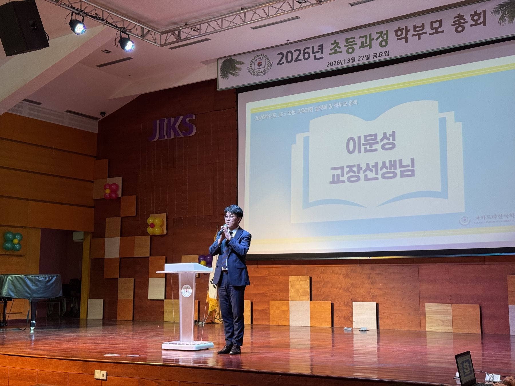 자카르타한국학교(JIKS, 교장 이문성)는 지난 3월 26일(목), 본교 강당에서 학부모들을 대상으로 ‘2026학년도 초등 교육과정 설명회’를 개최하고, 학교의 새로운 교육 비전과 4대 교육목표를 공식 발표했다.
